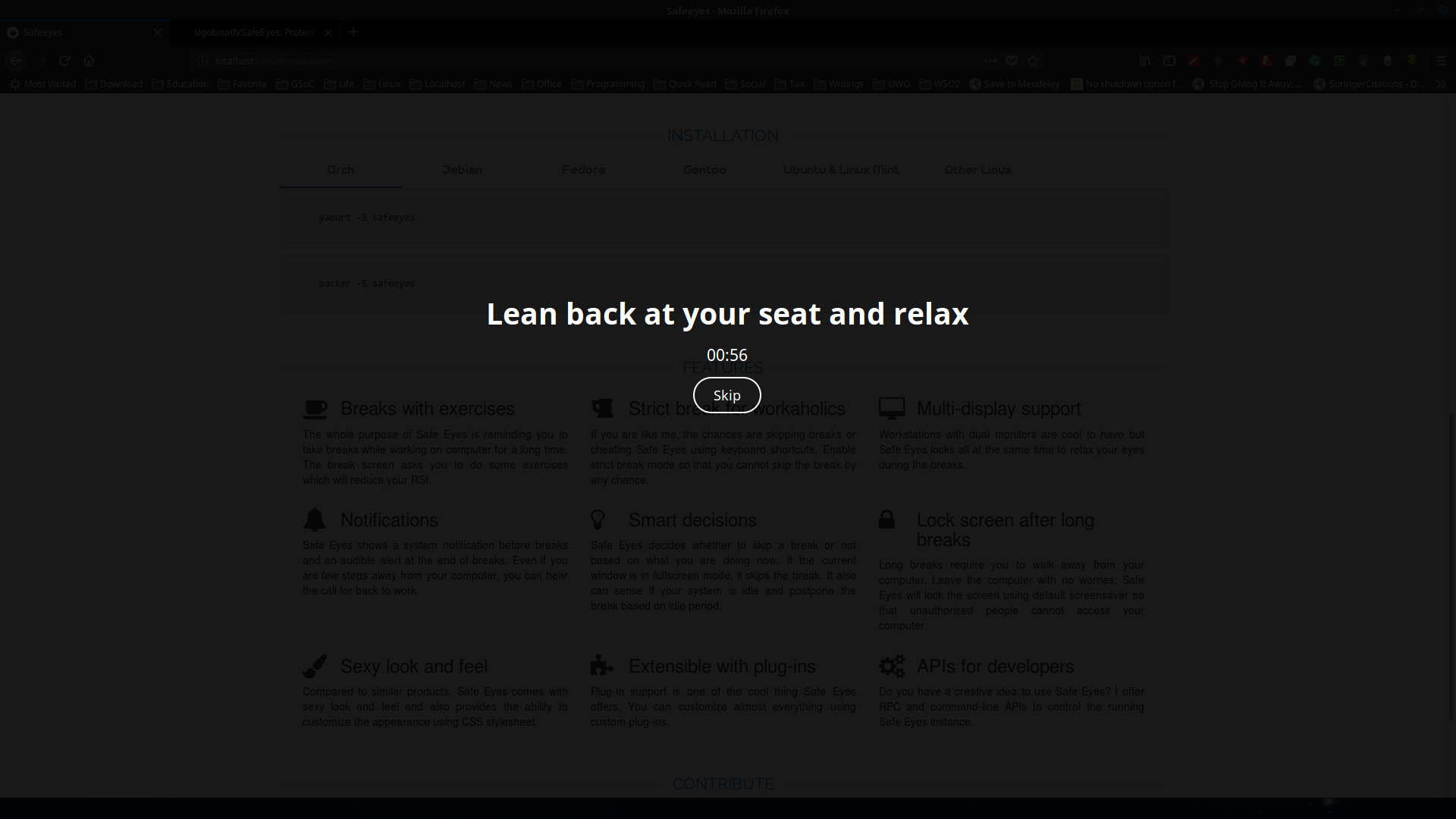 $ sudo yaourt -S safeeyes