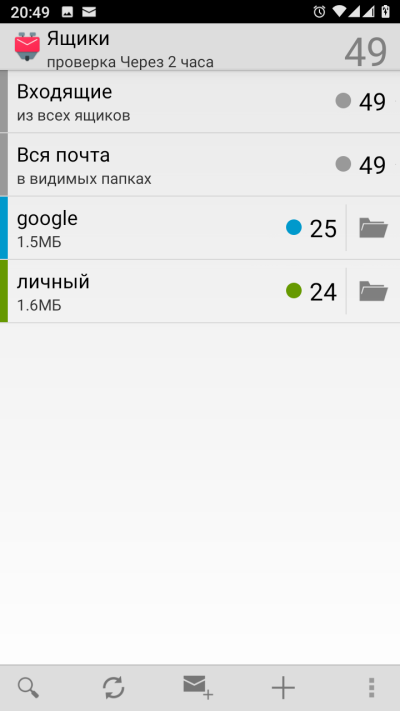 K-9 Mail является полнофункциональным почтовым клиентом, с поддержкой POP3, IMAP и Push IMAP аккаунтов. Возможно использования несколько аккаунтов, экспорт настроек и конфигураций аккаунтов. Дополнительные функции включают в себя синхронизацию нескольких папок, установку флагов, сохранение файлов, подписание, BCC-self и PGP/MIME.