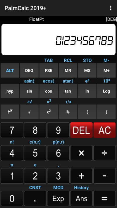 PalmCalc 2019+ это многофункциональный научный калькулятор с дополнительным функционалом. Интерфейс копирует традиционный цифровой научный калькулятор с 7-сегментным дисплеем. Это приложение 6 в 1. В составе : Научный калькулятор Конвертер величин Стандартный калькулятор Калькулятор чаевых Мировые часы Калькулятор массы тела