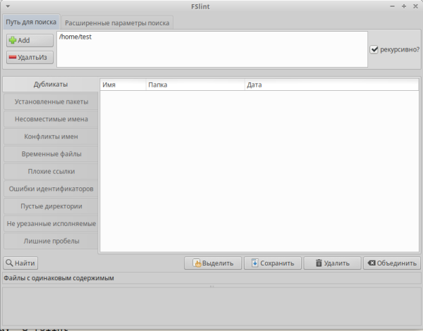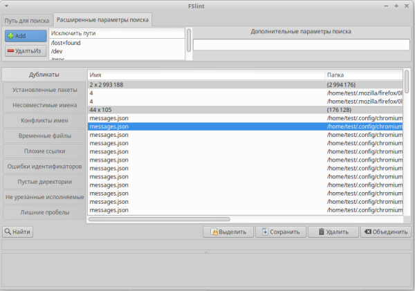 Вот как выглядит FSlint GUI.