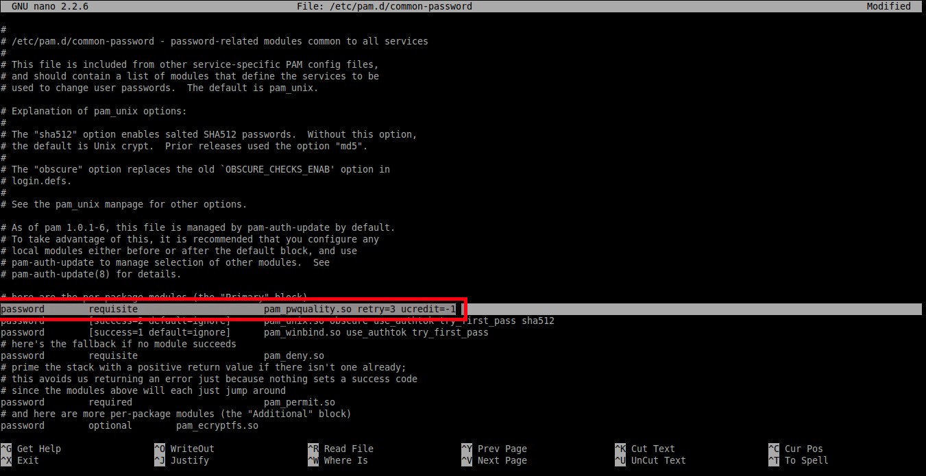 password requisite pam_pwquality.so retry=3 ucredit=-1