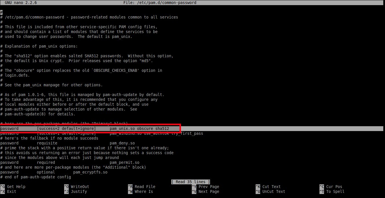 password [success=2 default=ignore] pam_unix.so obscure use_authtok try_first_pass sha512 remember=5