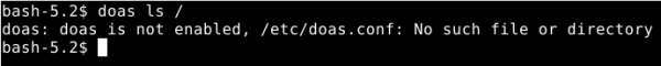 Теперь, когда doas установлен, возникает вопрос, как его использовать. Если запустить команду, добавив ее к другой команде, можно увидеть, что произойдет.