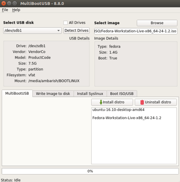 MultiBootUSB - это бесплатное кросс-платформенное приложение с открытым исходным кодом, которое позволяет вам создавать USB-накопитель с несколькими дистрибутивами Linux. Оно также поддерживает удаление любого дистрибутива в любой момент времени, поэтому вы, в любое время, можете освободить место на своем диске для другого дистрибутива.