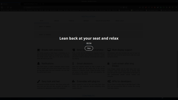 Safe Eyes - это красивое, многофункциональное, бесплатное программное обеспечение с открытым исходным кодом, которое заточено на уменьшение и предотвращение повторяющихся травм от напряжения (RSI), напоминая вам о перерывах.