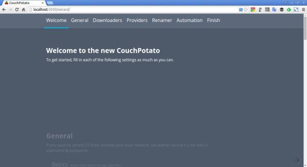 На панели инструментов CouchPotato немного прокрутите список и заполните строки в разделе General. Если вы хотите получить доступ к CP (CouchPotato) из-за пределов локальной сети, вам лучше защитить его с помощью имени пользователя и пароля.