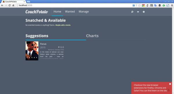 Кроме того, разработчик CouchPotato разработал расширения для браузеров Mozilla Firefox, Google Chrome и Safari, чтобы легко добавлять фильмы через IMDB.com.