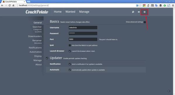 Точно так же вы можете добавить любые фильмы по вашему выбору. Как только они будут доступны в Интернете, они будут автоматически загружены в указанный каталог. Вы можете перейти на страницу настроек позже, щелкнув по кнопке с изображением шестеренки, в правом верхнем углу панели инструментов CouchPotato.