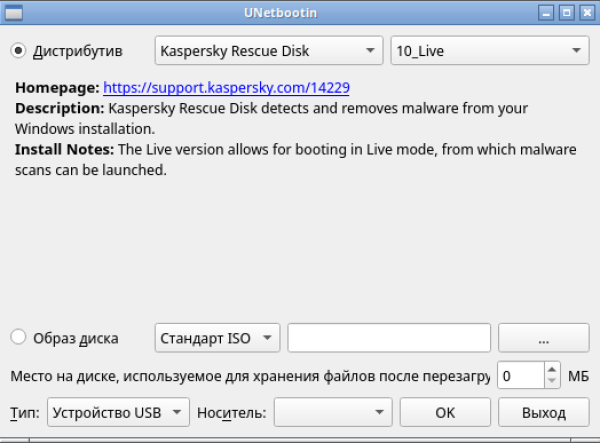 UNetbootin - это приложение для создания live USB, которое работает в Linux, Windows и macOS. Вам доступны несколько опций на выбор, в случае если вам необходимо использовать доступные диски, а также вы можете выбрать дистрибутив для автоматической загрузки ISO-файла.
