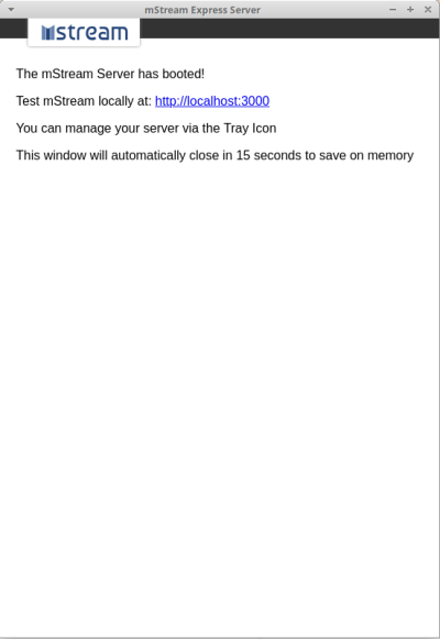 $ wget -c https://github.com/IrosTheBeggar/mStream/releases/download/3.9.1/mstreamExpress-linux-x64.zip $ unzip mstreamExpress-linux-x64.zip $ cd mstreamExpress-linux-x64/ $ ./mstreamExpress
