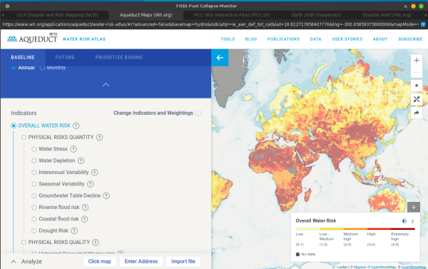 - Карта проекта Aqueduct (Wri.org) (Примечание: разработчики включили URL на страницу инструментов, чтобы вы могли выбрать нужную вам карту из 4 карт, которые они предлагают): https://www.wri.org/aqueduct/tools