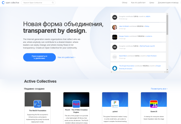 Open Source Collective - еще одна уникальная платформа финансирования с открытым исходным кодом. Она отталкивается от отчетов о фактических затратах разработчиков. Другими словами, разработчики (или кто-либо еще) могут загрузить квитанцию на данную платформу, содержащую расходы, необходимые для проекта, а участники могут просмотреть данную квитанцию и выбрать, оплачивать ее или нет.