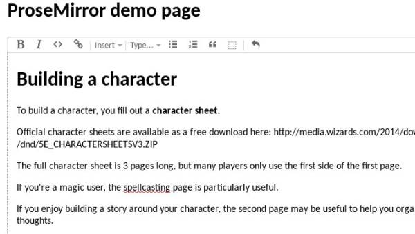 ProseMirror - простой, но эффективный редактор, предпочитающий минимализм, скорость и точность. Это попытка преодолеть разрыв между редактированием текста с помощью языка разметки Markdown и классическими текстовыми процессорами формата WYSIWYG. Он специально задуман как платформа под кастомизацию, так что если ваша организация ищет возможность разработки собственного редактора, то это отличное средство для начала. Даже без кастомизации, ProseMirror - это хороший, минималистичный и простой редактор для совместной работы.