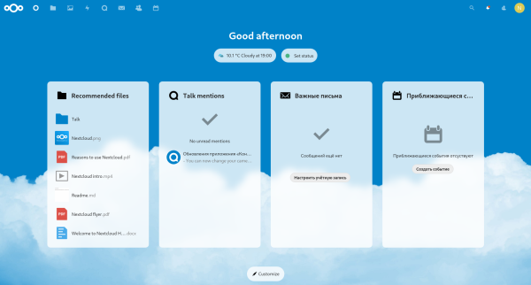 NextCloud, пожалуй, самый популярный облачный сервис обмена файлами с открытым исходным кодом. Помимо обмена файлами, он позволяет использовать календари, контакты, электронную почту и включает в себя профессиональные функции, такие как совместная работа в команде и синхронизация данных, а также набор приложений для текстовых и видеочатов.