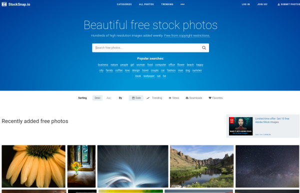Как и на любом другом веб-сайте с изображениями, вы можете найти нужные вам изображения, выполнив поиск по определенному ключевому слову в окне поиска или просмотрев доступные категории. StockSnap предоставляет вам изображения в полном оригинальном размере (без возможности загрузки в каком-либо нестандартном размере), поэтому, как и в случае с изображениями Unsplash, требуется предварительная обработка перед их использованием в проекте.