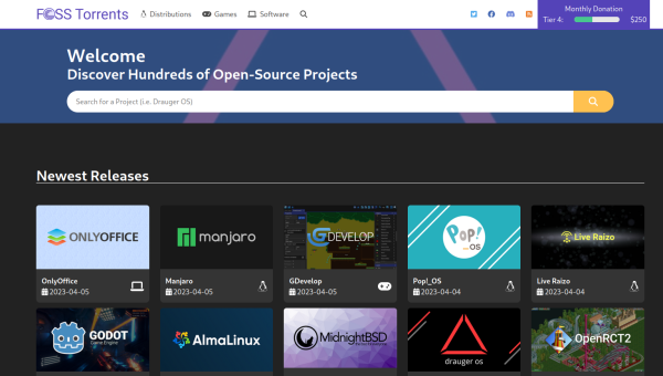 FOSS Torrents - это веб-портал, поддерживаемый сообществом, помогающий размещать торренты дистрибутивов Linux, игр и программного обеспечения.