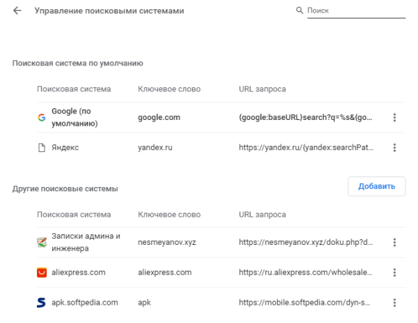 Некоторые поисковые системы автоматически добавляются в Google Chrome при первом их использовании, но вы также можете добавить свои собственные вручную и настроить их с другими параметрами.