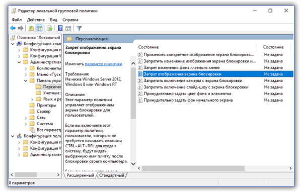 Отключение через редактор локальной групповой политики